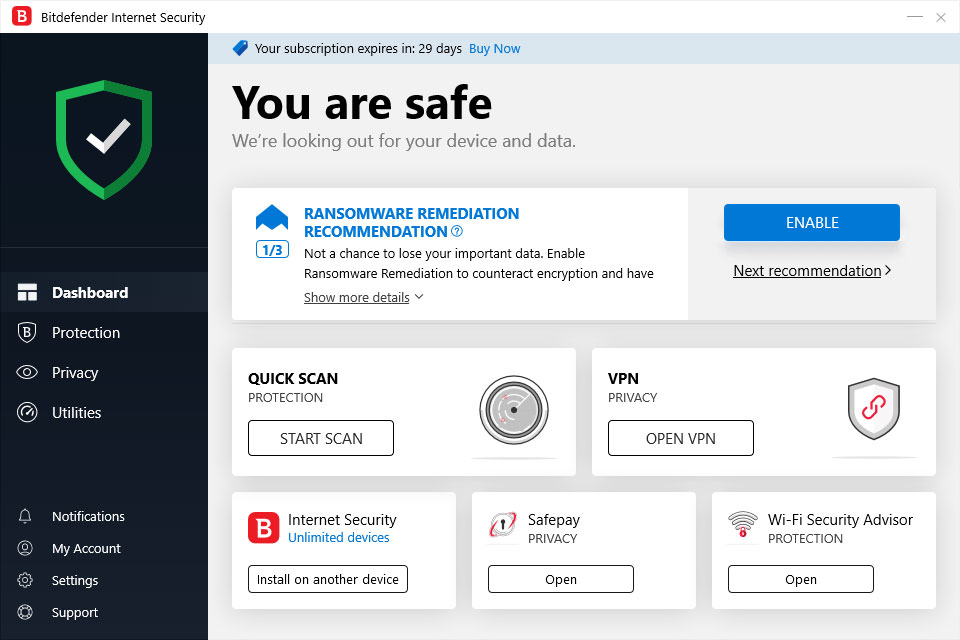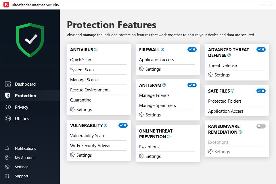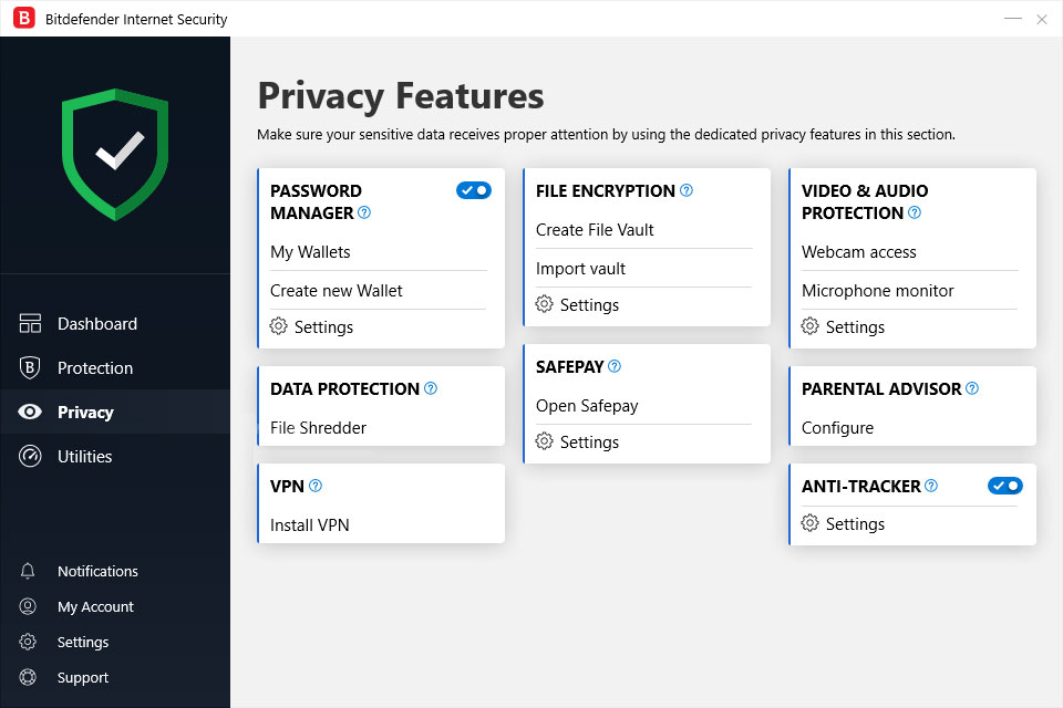 يوفّر Bitdefender Total Security باقة واسعة من الأدوات والمزايا، من أهمها :